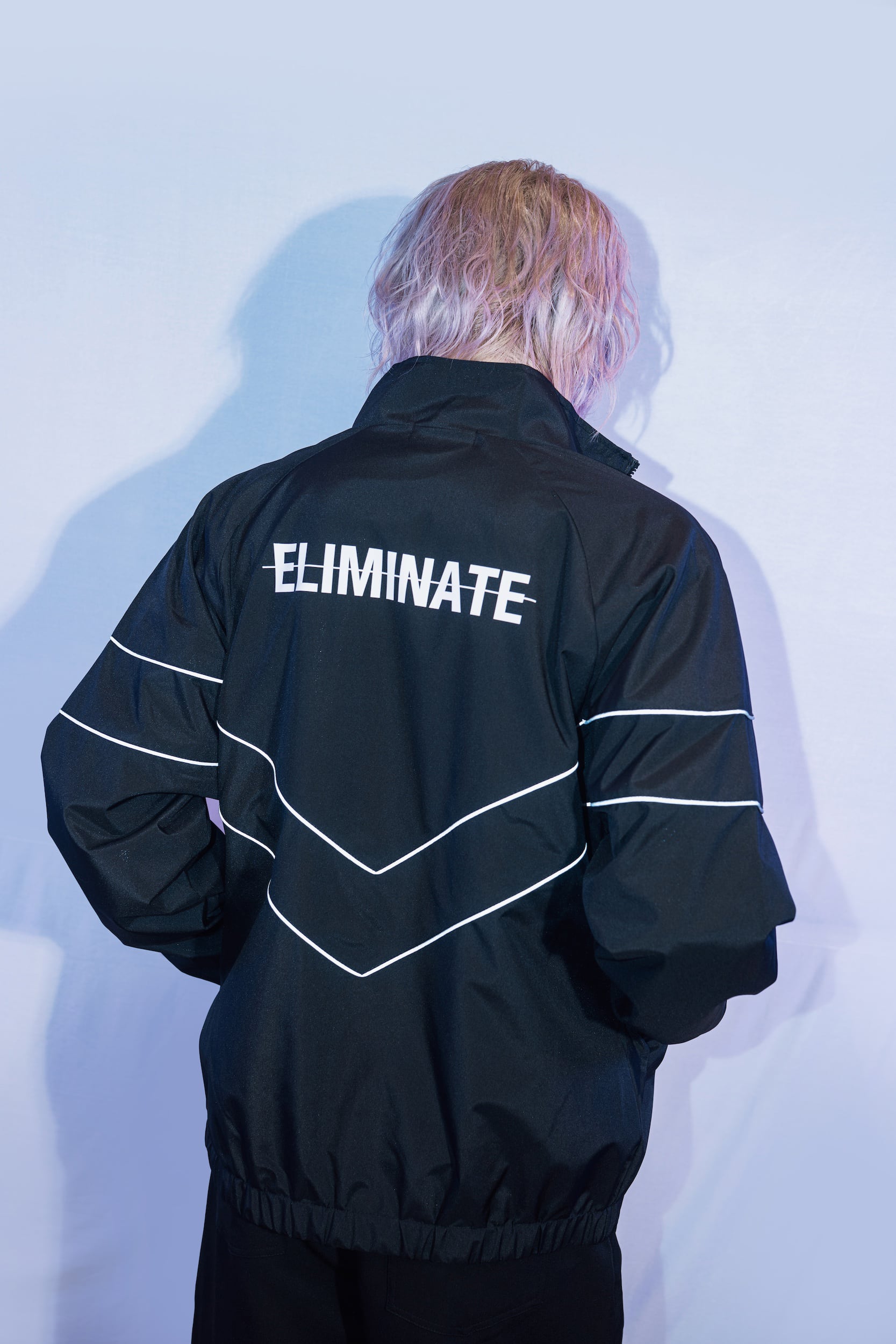 背面に大きく配置されたロゴが、コーディネートの主役になる一着。